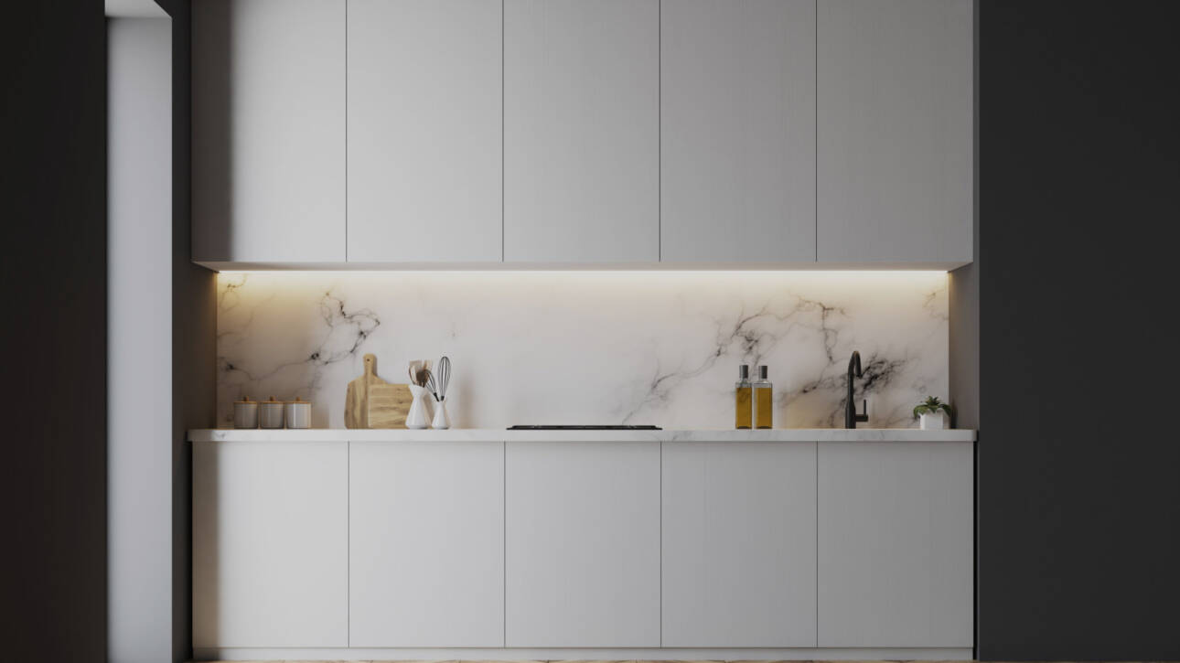 Oświetlenie w kuchni powinno być zróżnicowane – główne światło sufitowe oraz punktowe pod szafkami. Coraz większą popularnością cieszy się oświetlenie LED, które podkreśla nowoczesny charakter wnętrza i jest energooszczędne.